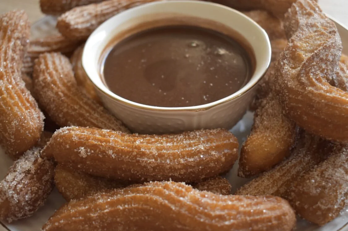 Pipe the churros into the oil and drag, using scissors cut them at 3 inches long. Cook for 6-8 minutes and use a spider spoon to flip.